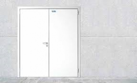 Hoja: Espesor 37 mm. inyectada en poliuretano 40/45 kgs. cantonera en aluminio lacado en blanco.